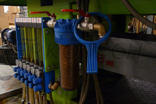Het filter wordt in de retour van de flowmeters geplaatst. Vervuiling vanuit spuitgietmatrijzen komt niet meer het koelsysteem binnen.