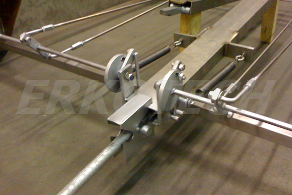 2D tekening voor het vervaardigen van de diverse onderdelen in RVS, vuurverzinkt staal, Polyacetaal en polyesther.