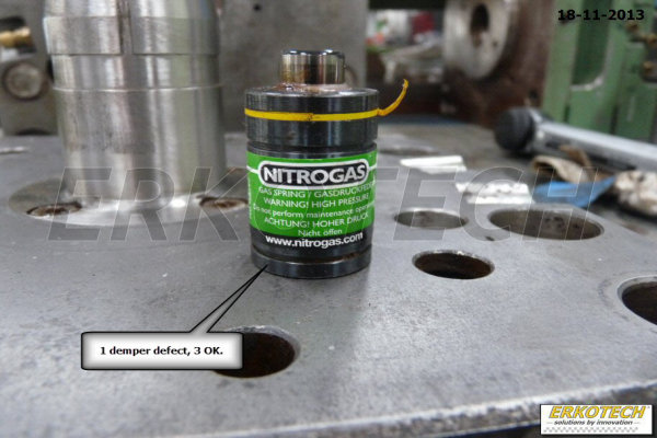 Vooral gasdempers en drukveren dienen na een vastgesteld aantal slagen vervangen te worden. Een matrijs mag tijdens productie nooit stil vallen door achterstallig onderhoud.