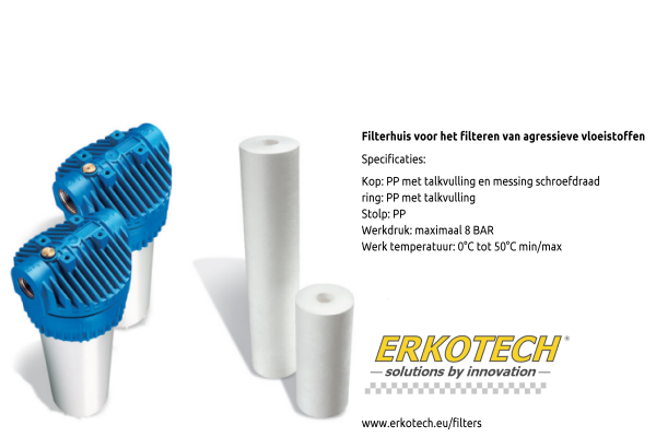 Robust filterhuis met messing aansluitingen voor het filteren van diverse vloeistoffen. Te gebruiken in combinatie met draadgewonden of melt blown filterpatronen.