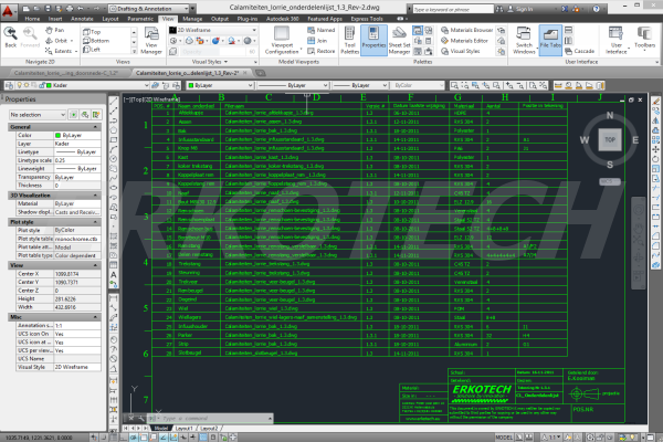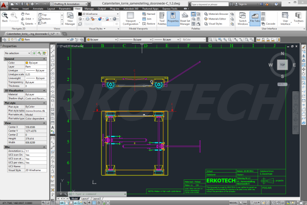 2D tekening voor het vervaardigen van de diverse onderdelen in RVS, vuurverzinkt staal, Polyacetaal en polyesther.