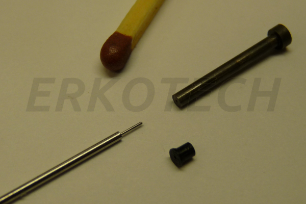 Wij slijpen en draadvonken onderdelen voor micro spuitgiet matrijzen op 2 micron nauwkeurig. Deze matrijs heeft o.a. een pen van ø 0,18 + 0,00 / - 0,02 millimeter.